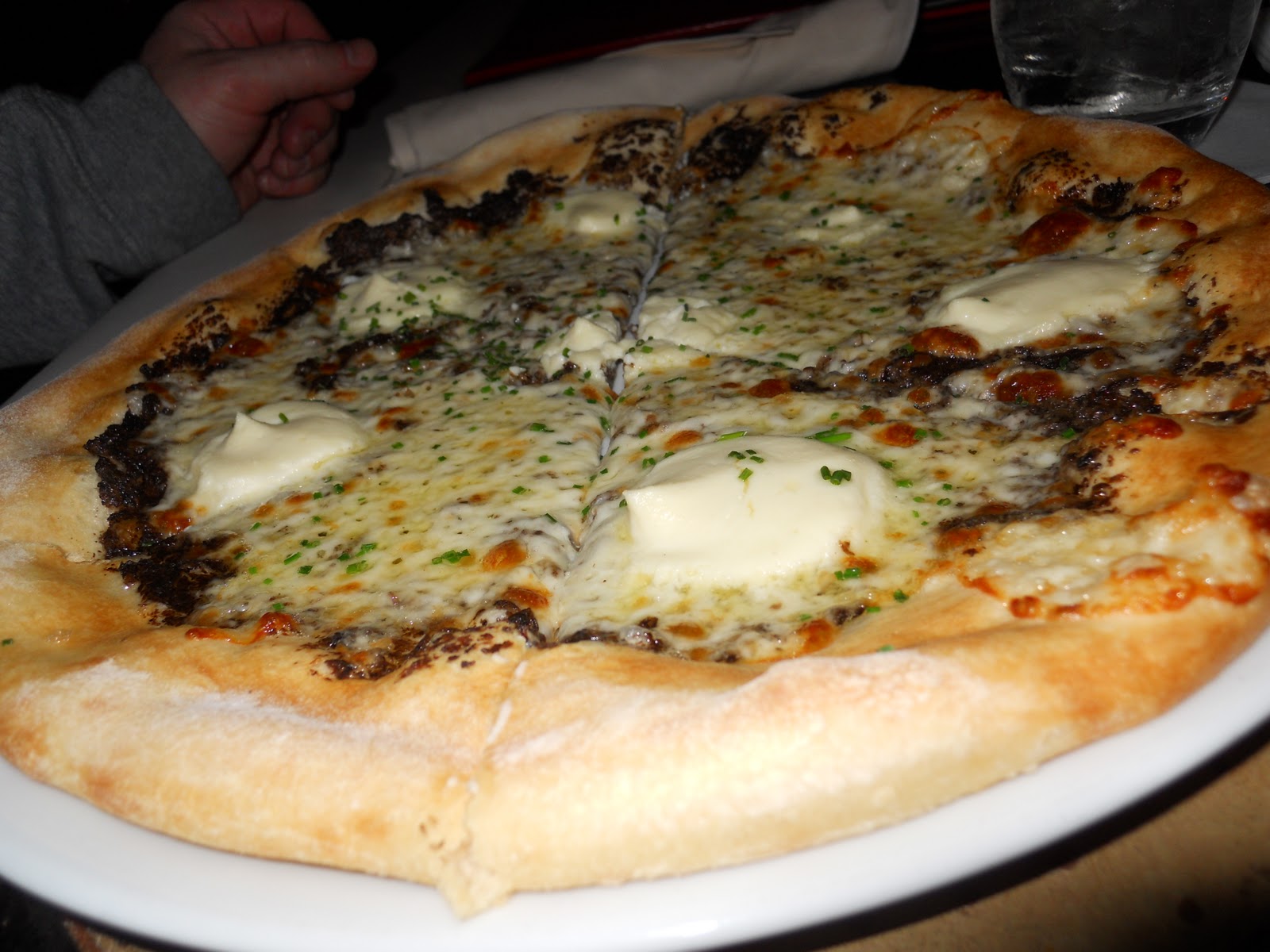 Pizza: I had never tried Robiola Cheese and loved it. It’s extremely creamy and luscious, my favorite type of cheese. The typical tomato sauce is replaced with a Roasted Mushroom Puree and the idea is fabulous. The yeasty dough and the earthiness of the mushrooms are a great addition to the cheese, finished with great Truffle Oil.