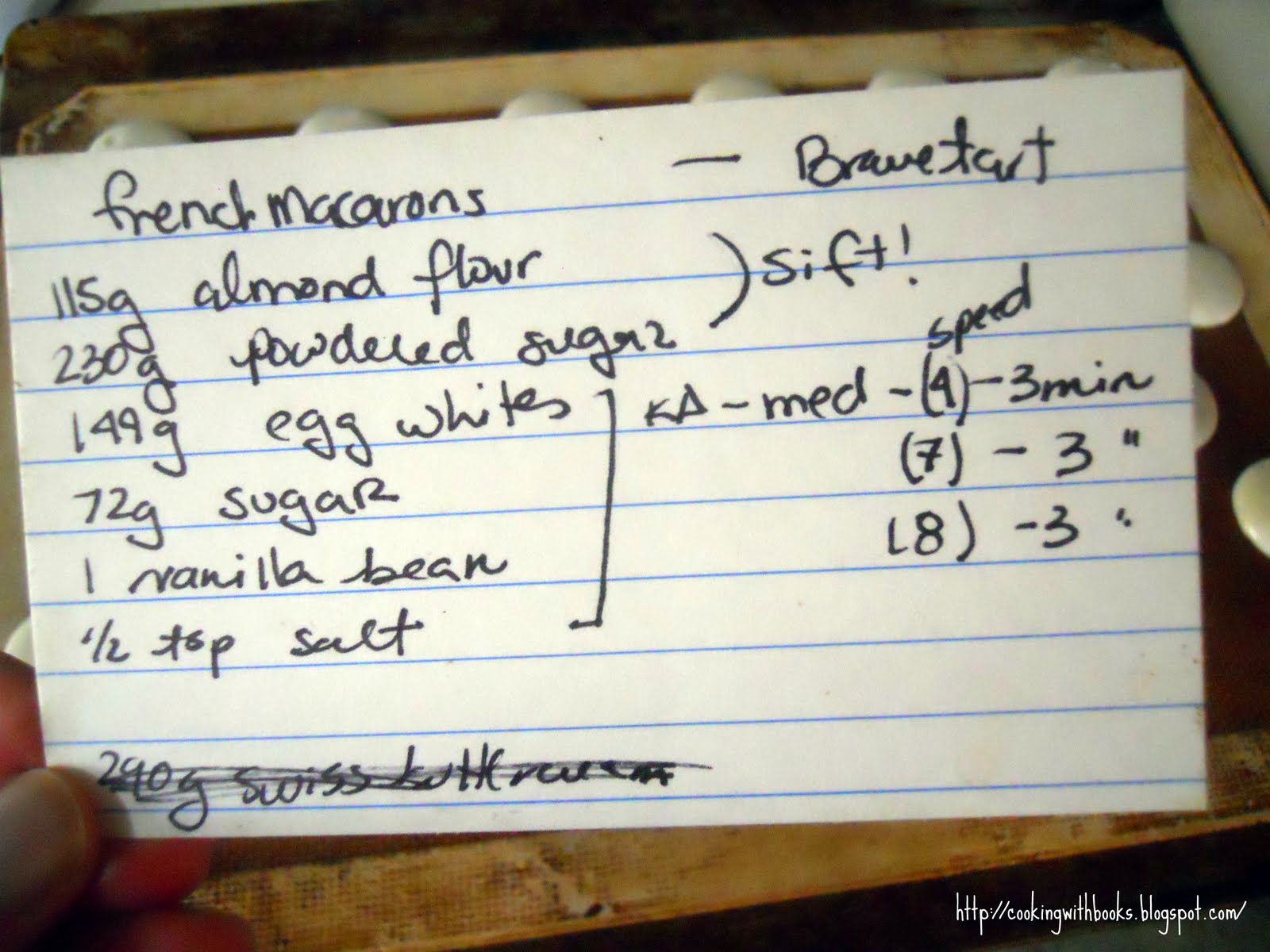 So, I decided to join the maniacs and found the best recipe out there, a no b.s. recipe that told me how, what and why. Meet BraveTart. Stella is a graduate of the CIA and makes macarons every day at her job. So obviously she knows what she’s doing. She’s got an amazing “Ten Commandments” as well as “10 Myths” about macarons that will help any soul in despair! I wrote down her recipe on a note card, brought my laptop with instructions to the kitchen and baked!