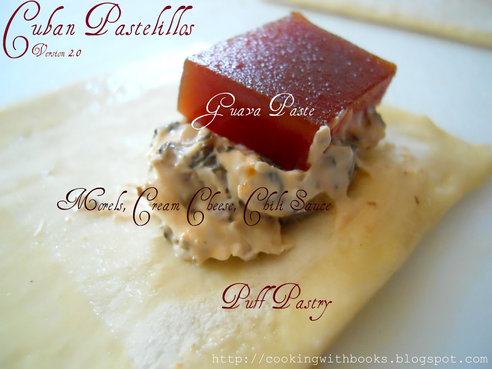 - Fold out puff pastry sheet and cut into squares, rectangles or triangles (like the crescent rolls that come in a can). Place a dollop of morel cream and top with a guava paste square.