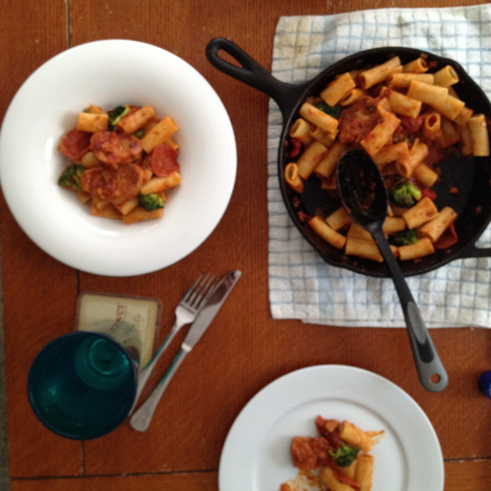 Yum! looks simple and comforting. Plus I’ll take your coffee table, and raise you 2 tv trays 😉 that’s how we dine.