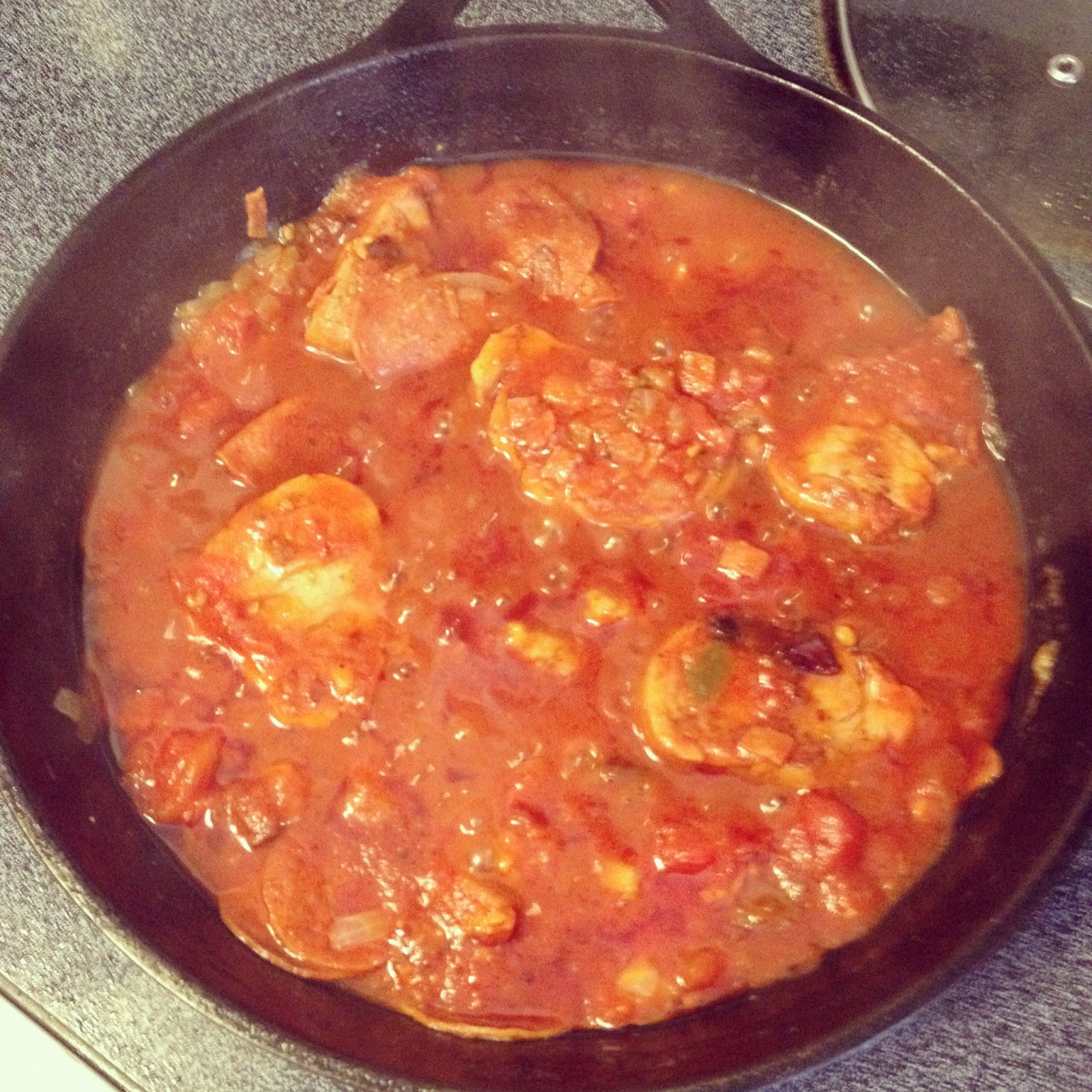 - Pour spaghetti sauce over everything and sprinkle sugar in. Simmer until pork is fully cooked.