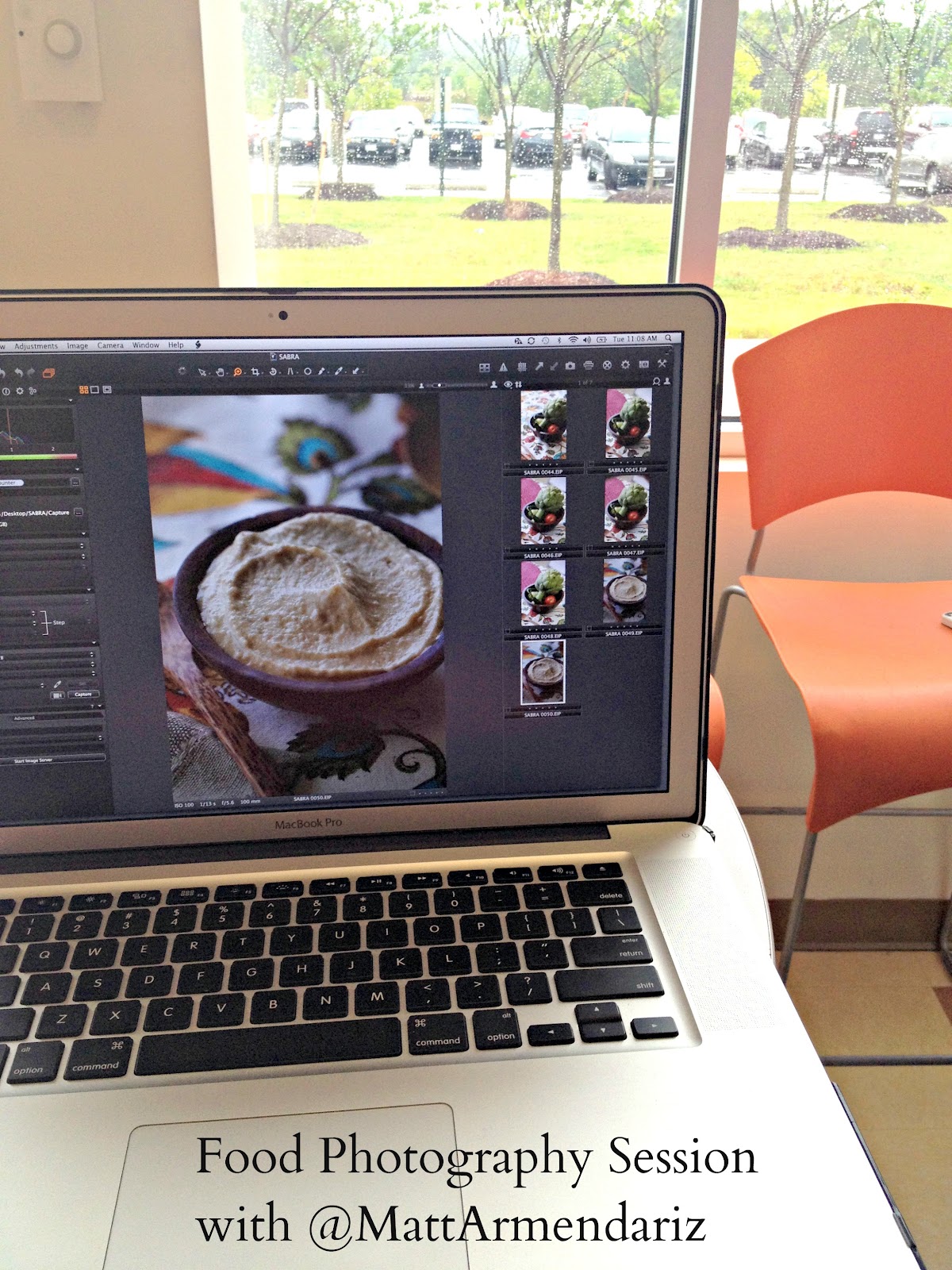 We also talked about props and how you can use much smaller dishes in photos; they’ll look fuller and give you a better photo. See that bowl of hummus below? It was smaller than the palm of my hand! Perception is everything and Matt’s ultimate advice is to tell a story. Whatever your story is, make sure your photos tell it. Imagine that someone can’t read the words in your post and all they get to see are pictures. Have those photos speak to them!
