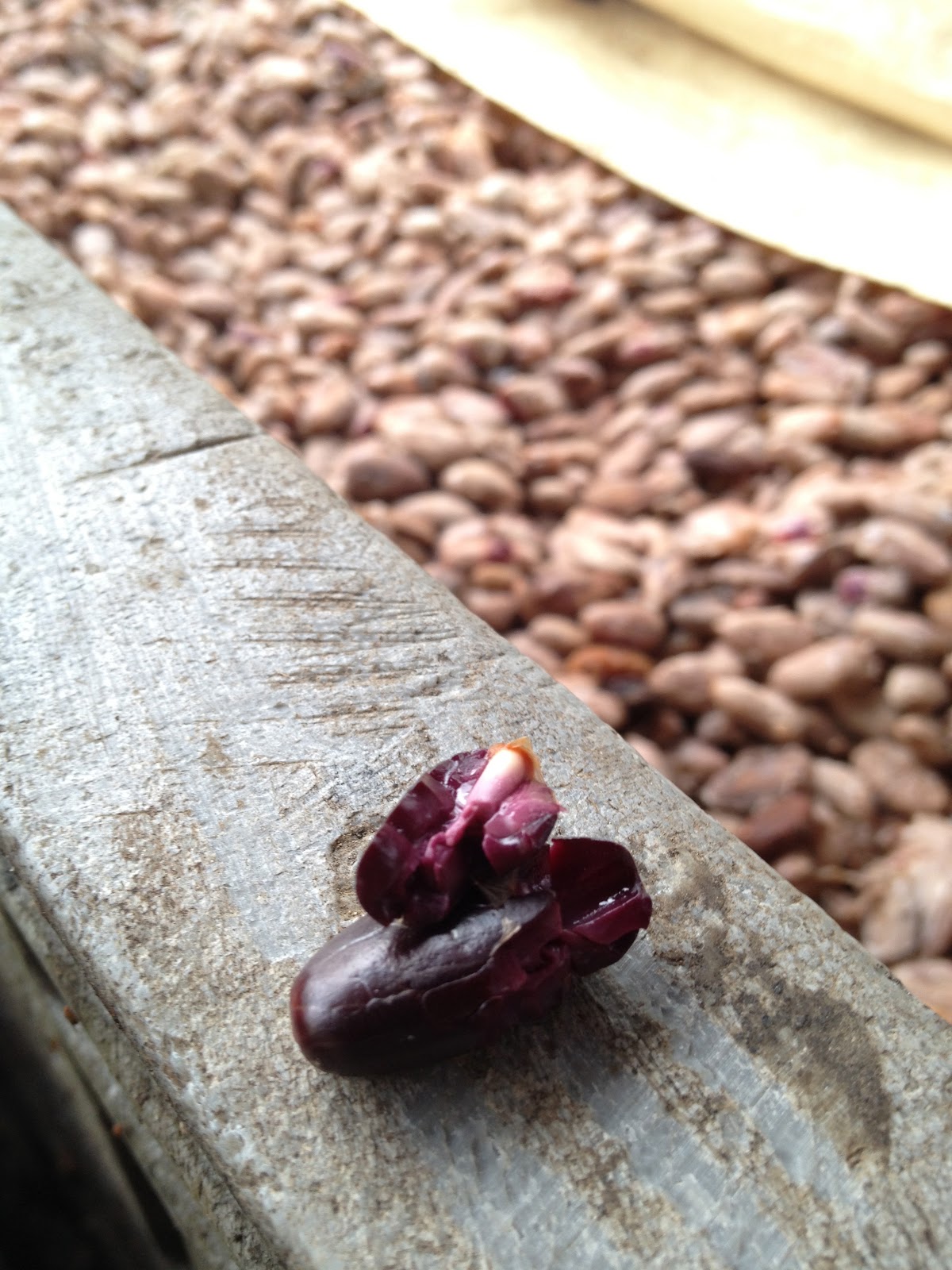 After the fermentation process, comes the drying. The farm uses the bright and hot Caribbean sun to take care of drying the pods for them, which is an eco-friendly way for sure! The pods are dried and in the process crack to reveal the cacao nibs inside!