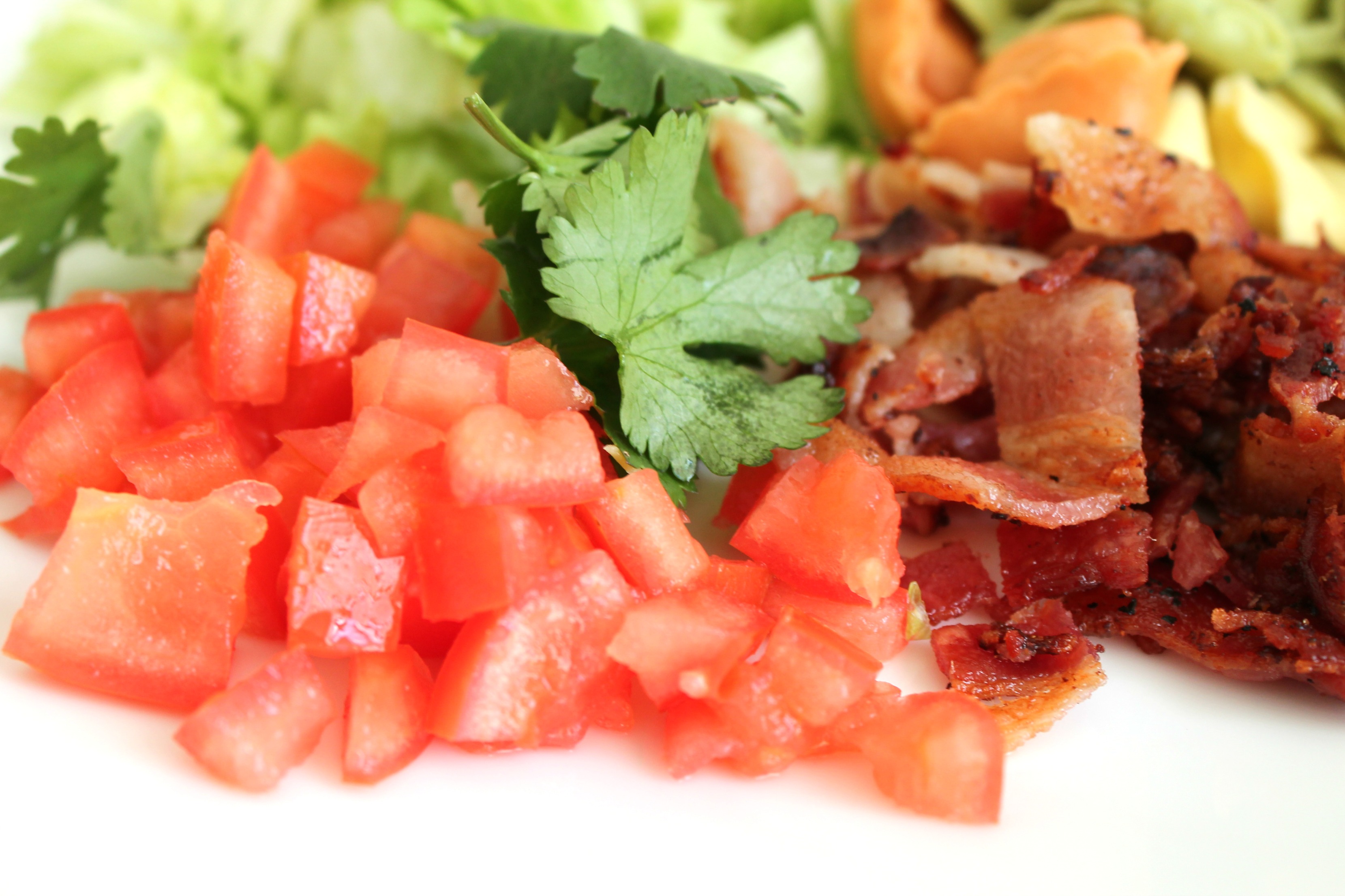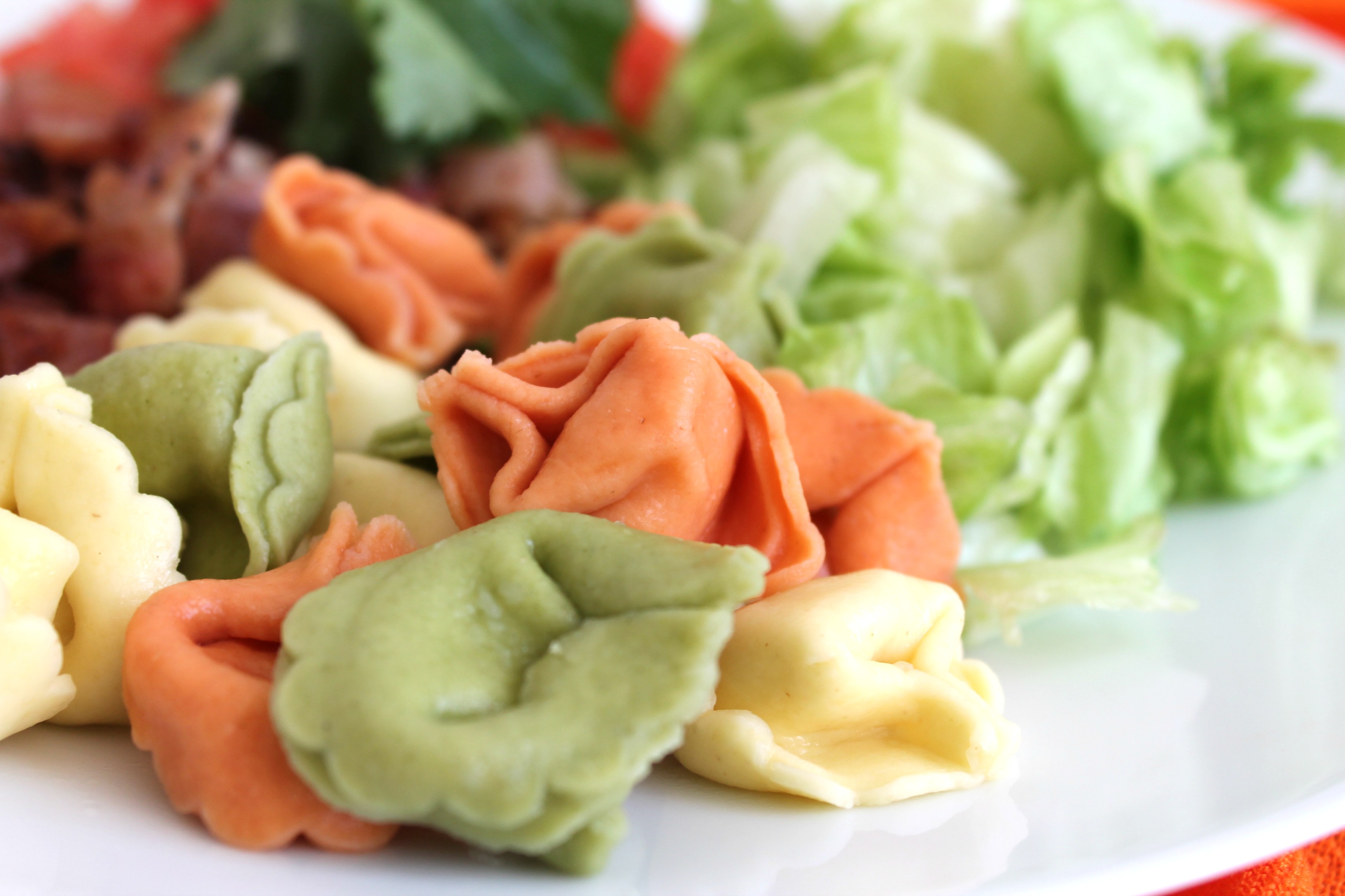 - Toss tortellini, chopped bacon, lettuce, tomato, and cilantro together.