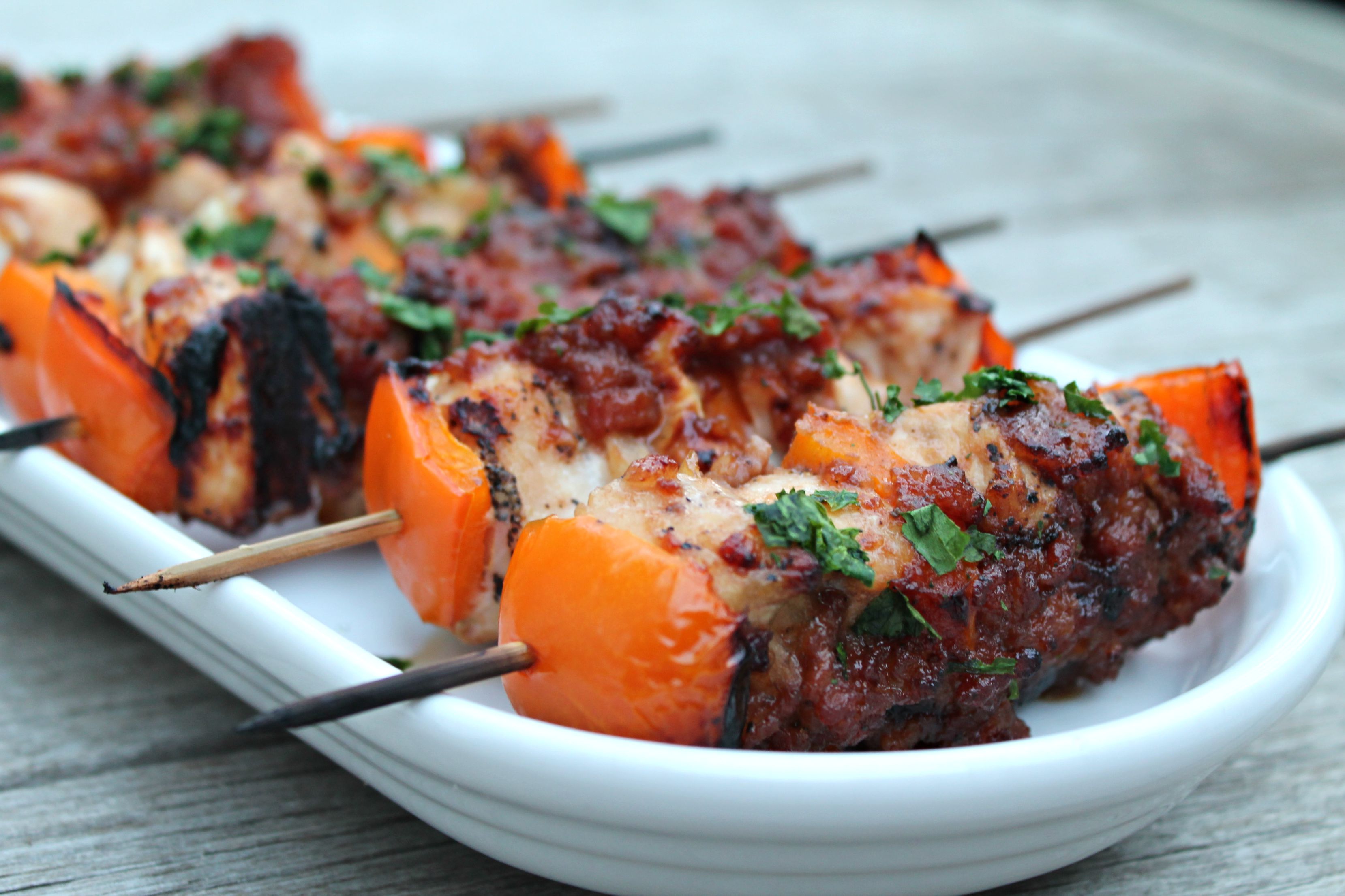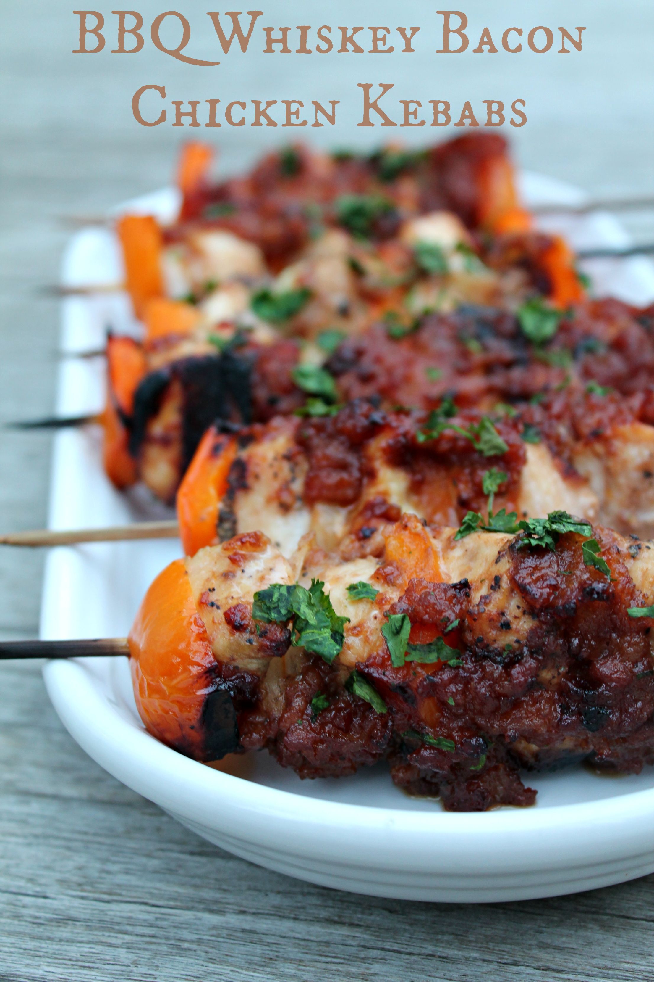 BBQ Whiskey Bacon Chicken Kebabs