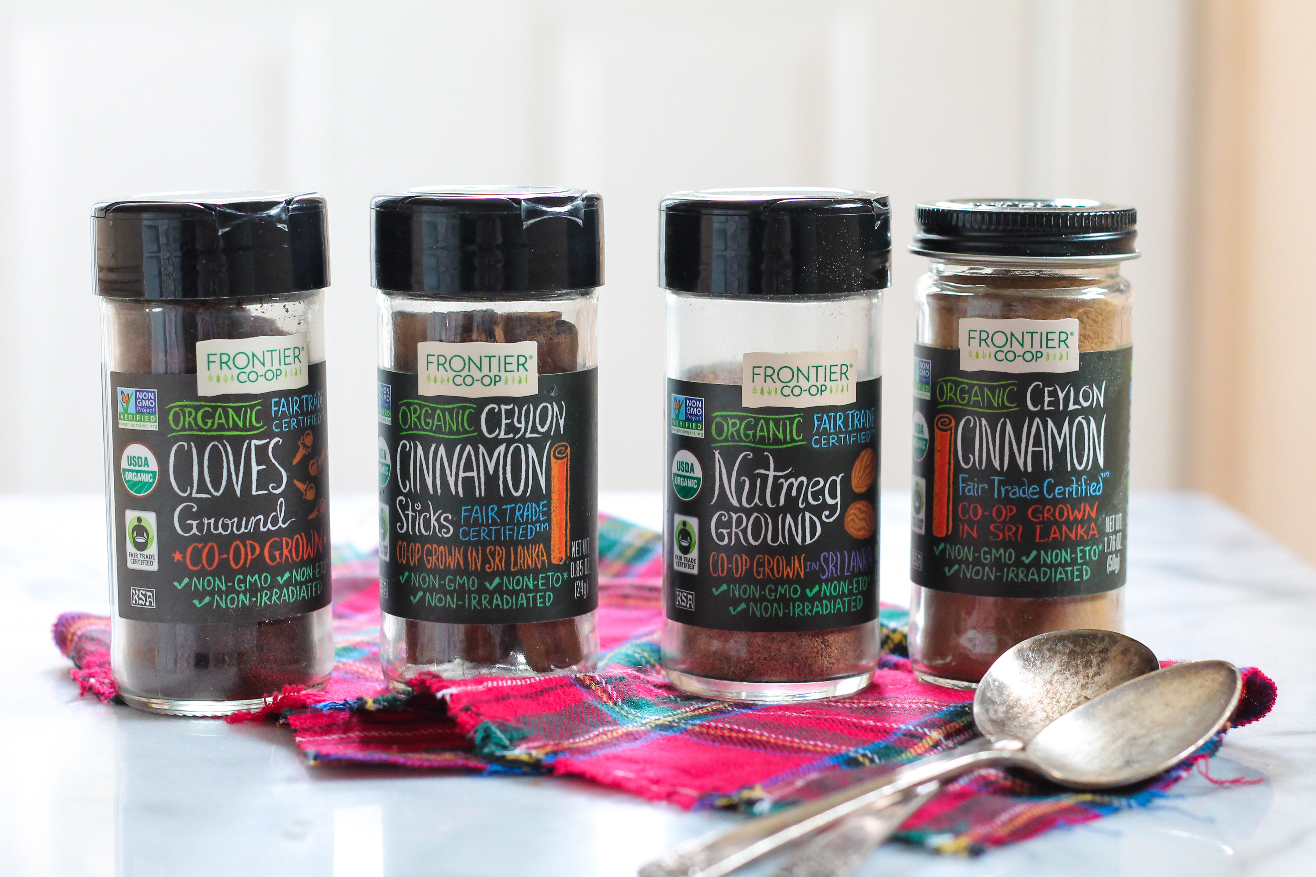 I wanted to recreate the spiced syrup recipe with fair trade certified ingredients instead of the usual white sugar my mother would use, so a combination of Wholesome’s Organic Blue Agave and their Organic Dark Brown Sugar are the base of it – 70% syrup and 30% sugar is what makes this sublime. the dark brown sugar adds depth in flavor while the agave acts as the base. Then come the fair trade, organic, non-GMO spices from Frontier Co-Op, hands down my favorite spice company. Their spices are fresh, incredible tasting, and add so much to your recipes. Cinnamon, cloves, and nutmeg all come together for this Dominican holiday dessert!